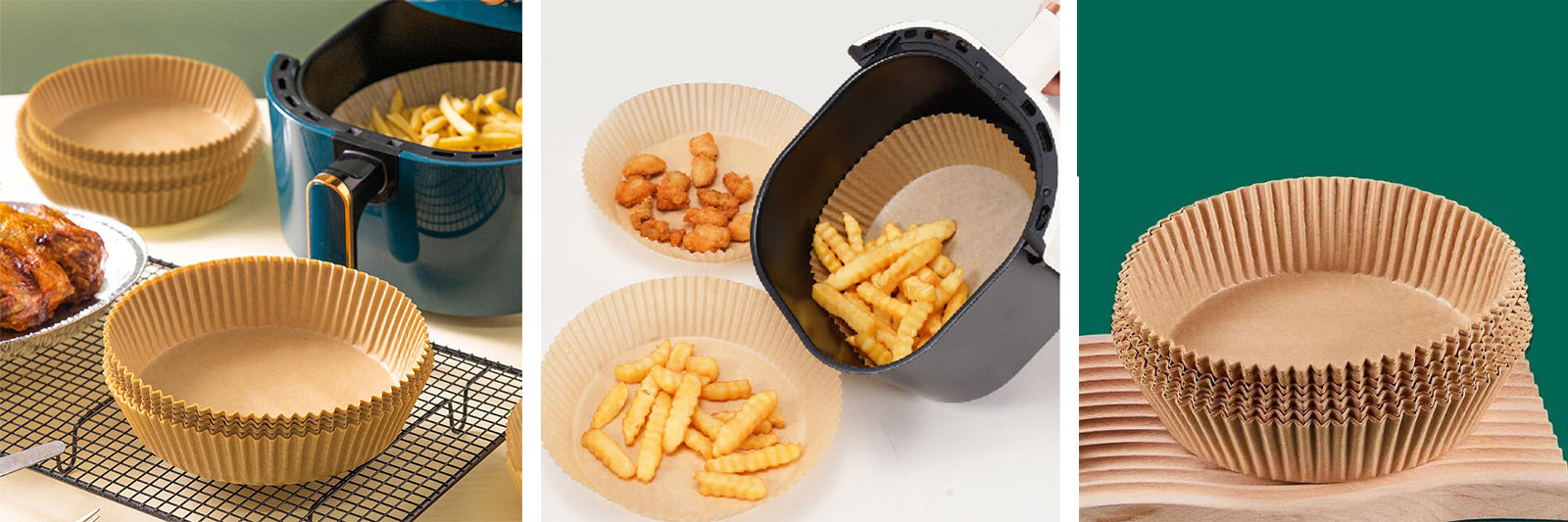 6 ~ 9 inci kami 100% Kertas Fryer Udara Kayu Virgin adalah solusi sempurna untuk meningkatkan pengalaman penggorengan udara Anda. Terbuat dari 100% bubur kayu perawan dan dilapisi dengan silikon berkualitas tinggi, kertas penggorengan udara ini memastikan daya tahan yang sangat baik, sifat non-stick, dan ketahanan panas yang optimal. Ini dirancang untuk menahan suhu tinggi, membuatnya ideal untuk berbagai tugas memasak seperti memanggang, memanggang, atau menggoreng udara.